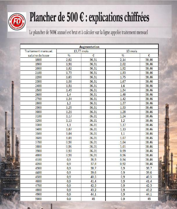 Suite à la 4ème proposition des NAO 2026, vous trouverez ci-dessous un tableau récapitulatif et explicatif du plancher annuel à 500€ brut.